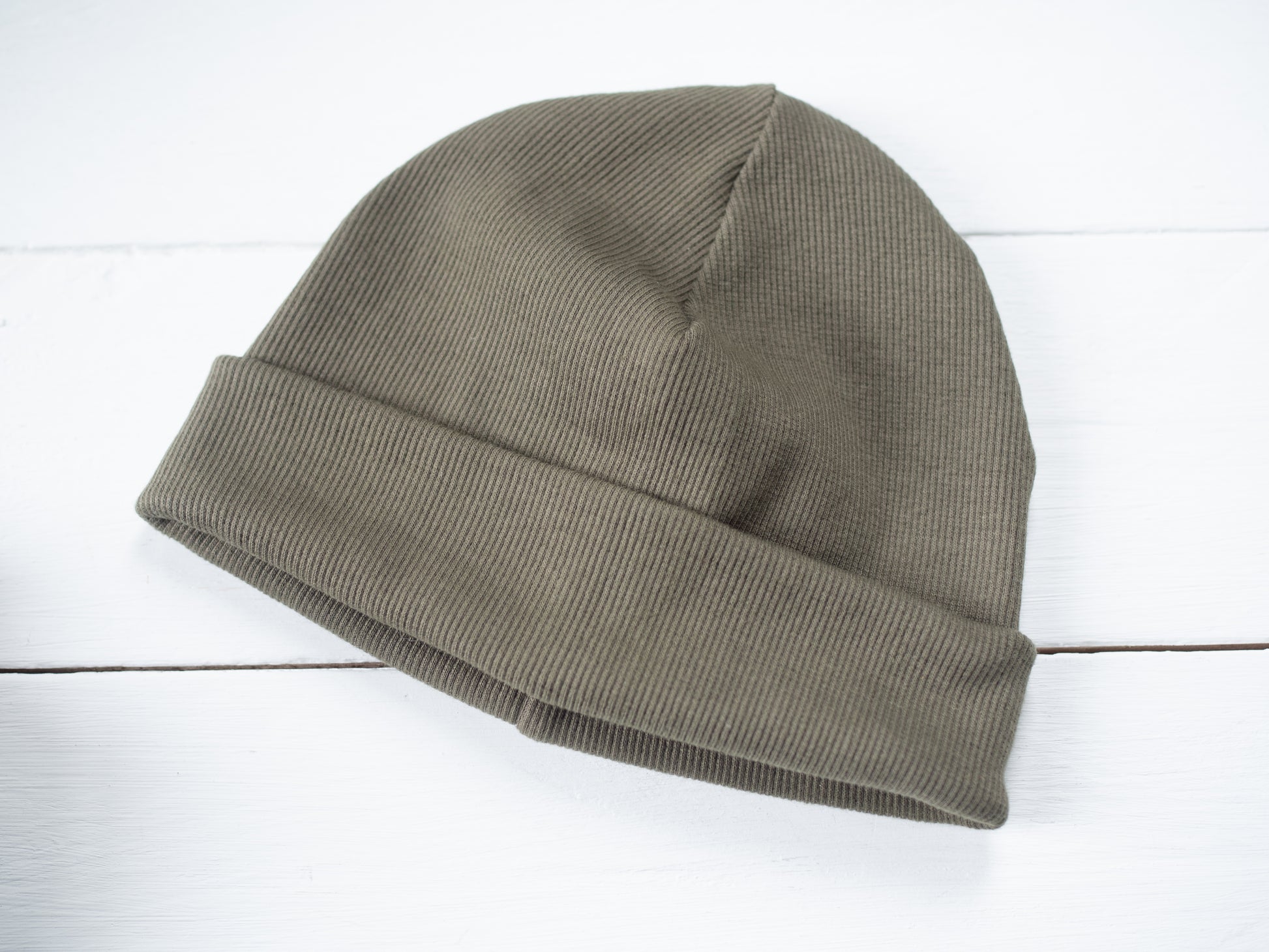 Die kuschelweiche Rip-Beanie aus Bio-Baumwolle hält den Kopf und die Ohren warm.